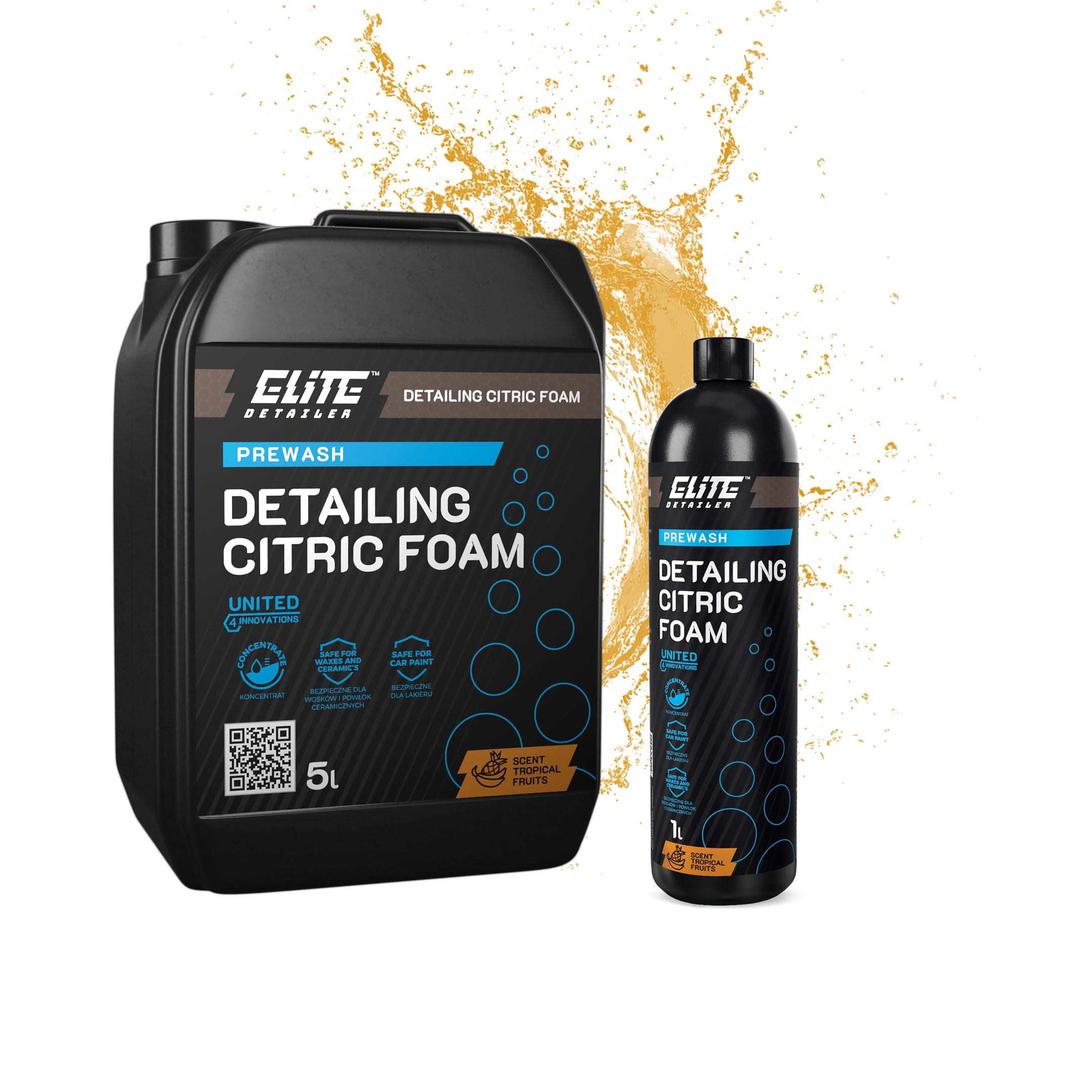 Detailing Citric Foam ist sowohl in 1-Liter-Flaschen mit auslaufsicherem Verschluss als auch in 5-Liter-Kanistern erhältlich – mehr Power, mehr sparen!