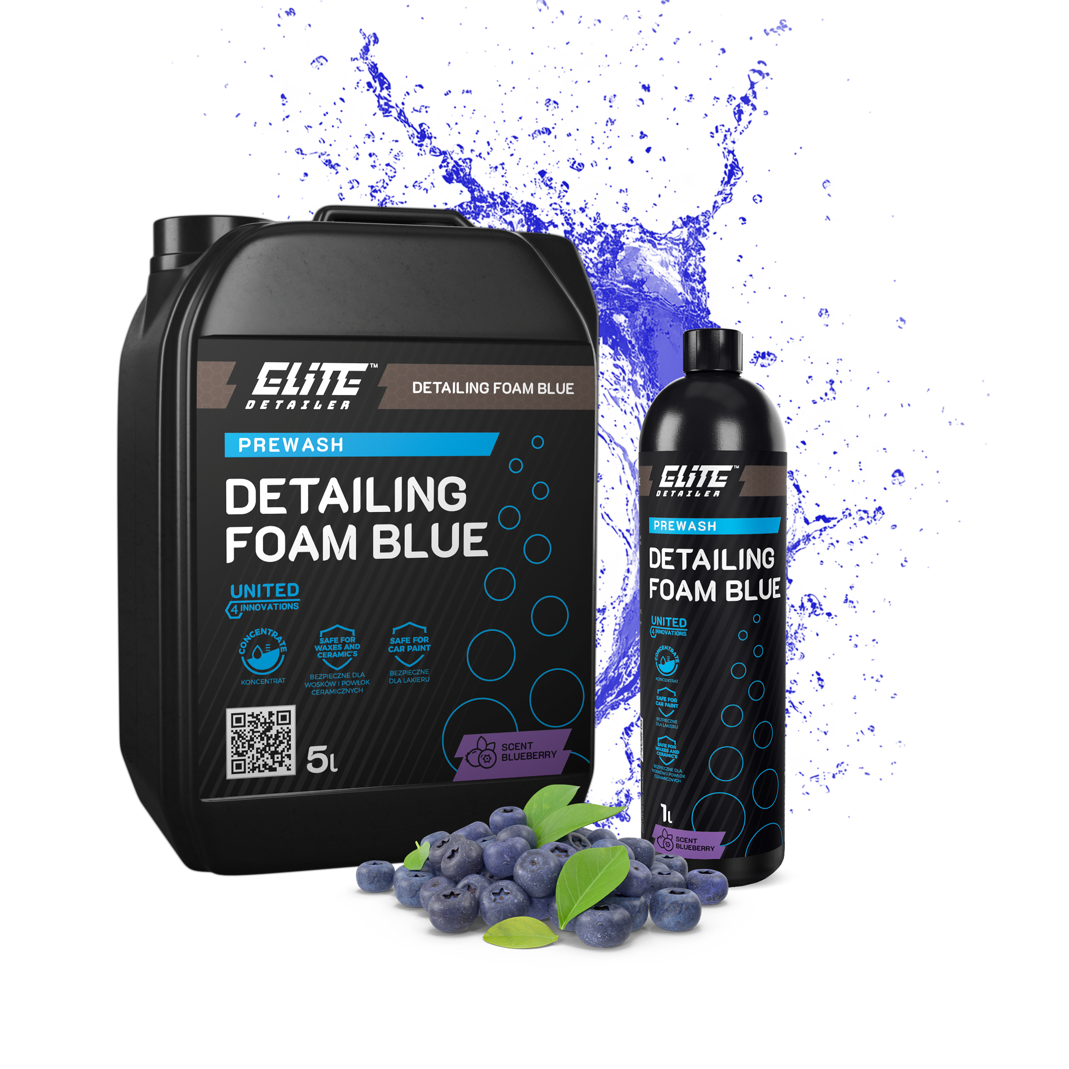 Detailing Foam Blue ist sowohl in 1-Liter-Flaschen mit auslaufsicherem Verschluss als auch in 5-Liter-Kanistern erhältlich – mehr Power, mehr sparen!