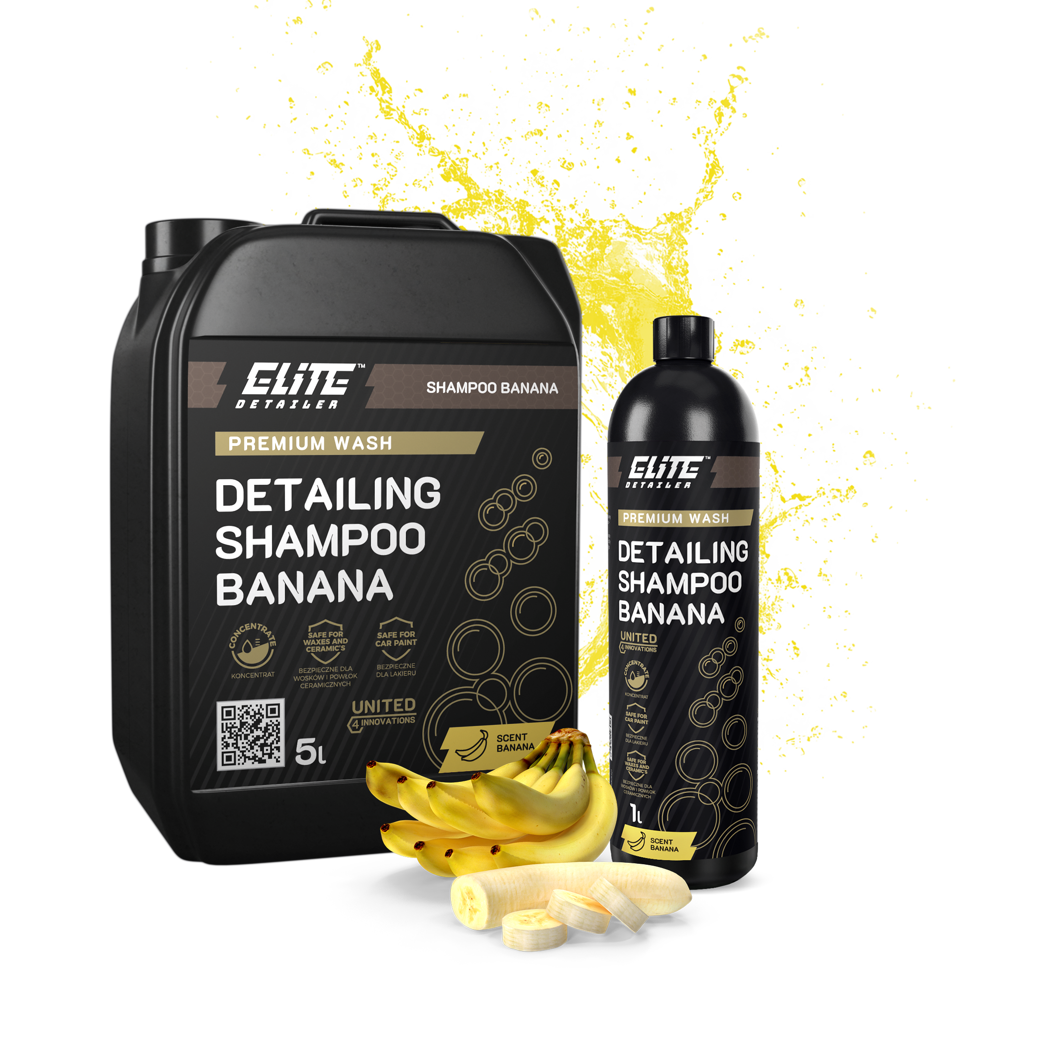 Detailing Shampoo Banana ist sowohl in 1-Liter-Flaschen mit auslaufsicherem Verschluss als auch in 5-Liter-Kanistern erhältlich – mehr Power, mehr sparen!