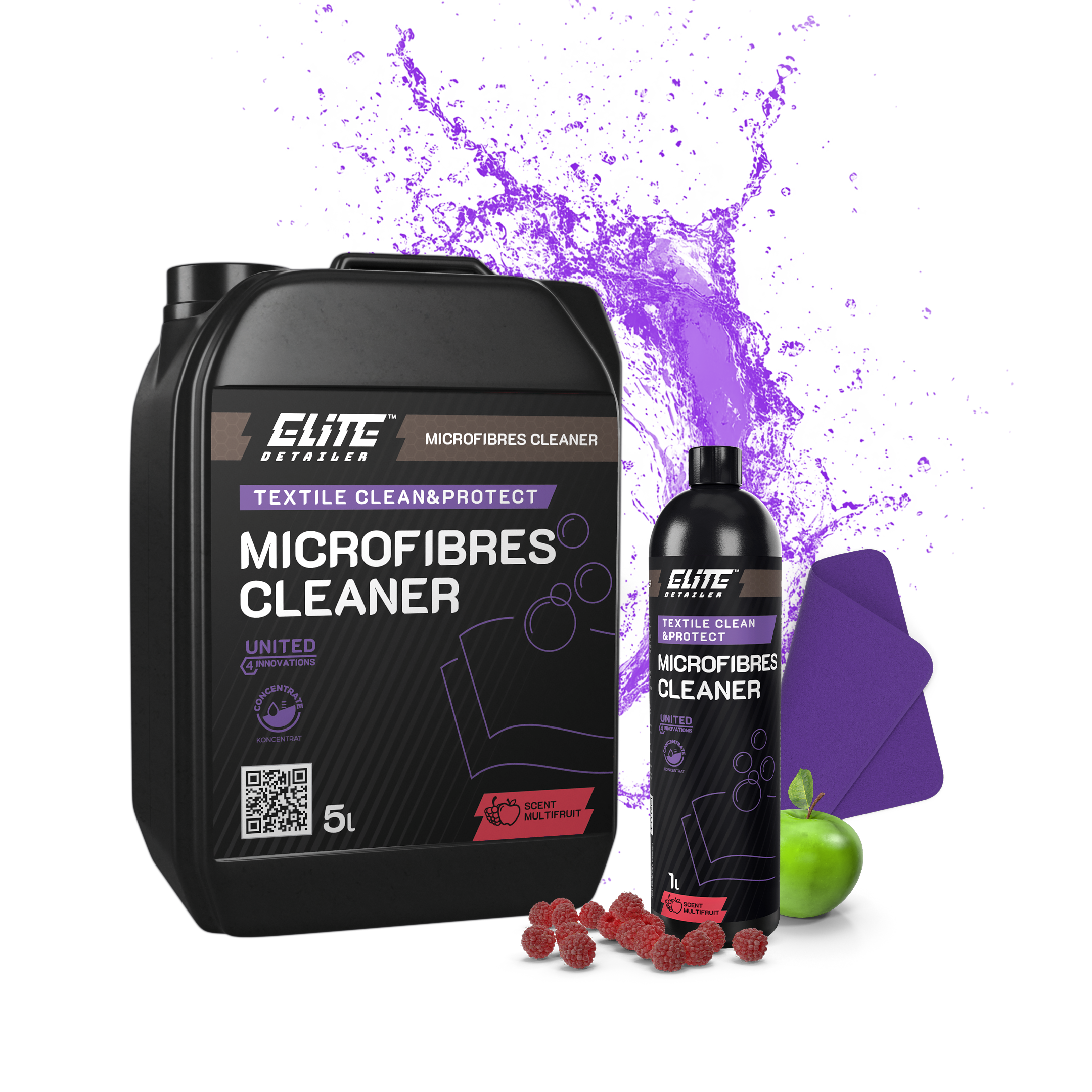 Microfibres Cleaner ist sowohl in 1L -Flaschen mit auslaufsicherem Verschluss als auch in 5-Liter-Kanistern erhältlich – mehr Power, mehr sparen!