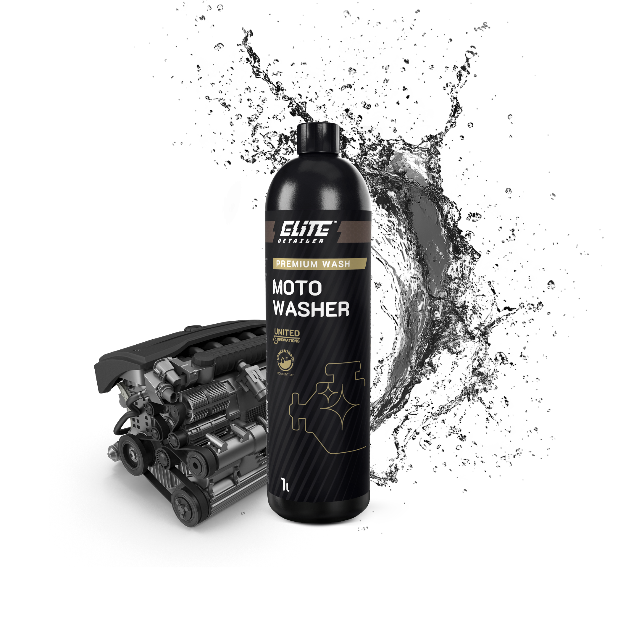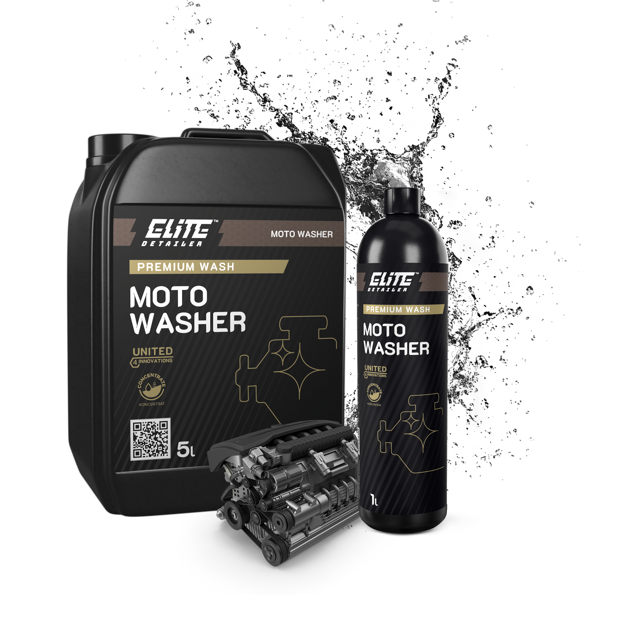 Moto Washer ist ein alkalisches Konzentrat, speziell entwickelt zur Entfernung von fettigen Ablagerungen im Motorraum. Es ist sicher für Kunststoff- und Gummiteile und hinterlässt keine weißen Rückstände.
